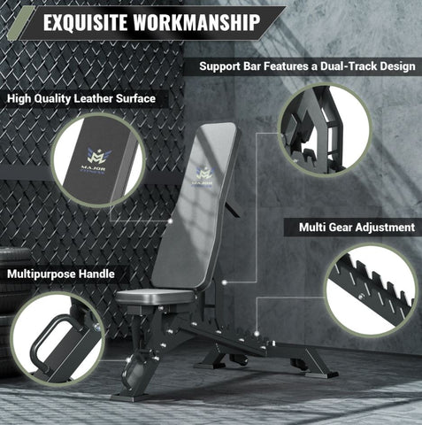 If you’re looking to pair your weight set with a bench, Major Fitness’s PLT01 weight bench is the perfect addition to any home gym. This easily adjustable bench is made with the highest quality materials and meticulous attention to design, so it’s more than well-equipped to handle your most demanding sets.